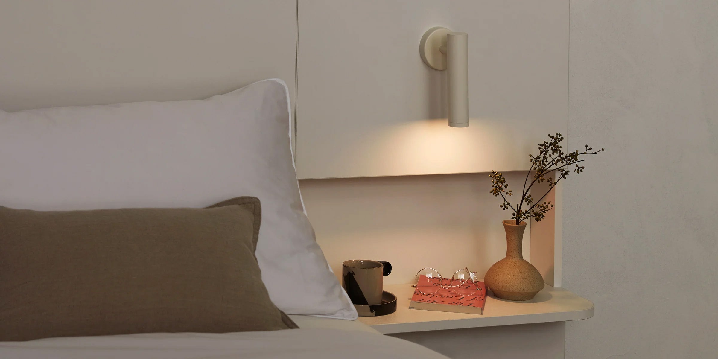襯托出飯店風臥室氣氛的床邊多功能面板