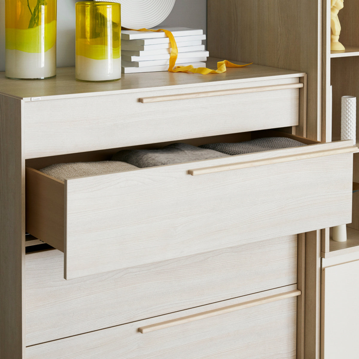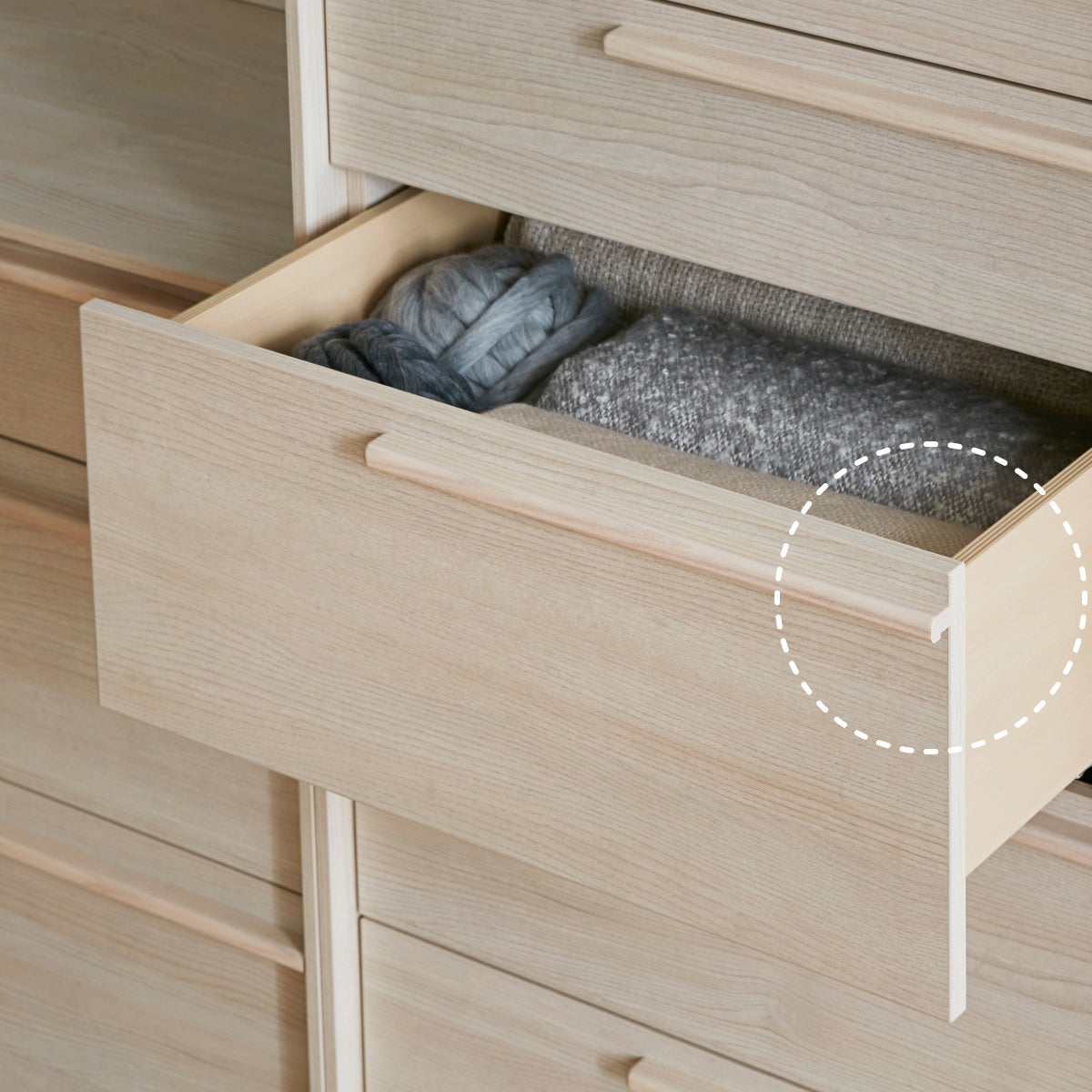 多層次的收納結構 , 提供足夠的空間存放不同成員的衣物 自然色調和木質把手營造出溫馨氛圍