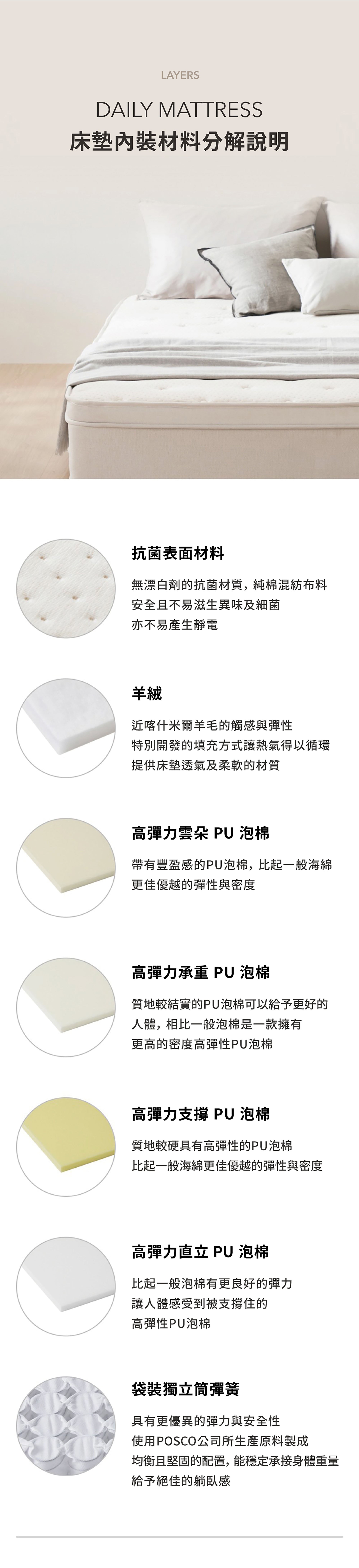 DAILY MEDIUM柔軟且穩定 , 助於減少翻身時的干擾 , 提供更加平穩的睡眠環境 , 適合那些容易在夜間改變睡姿的人