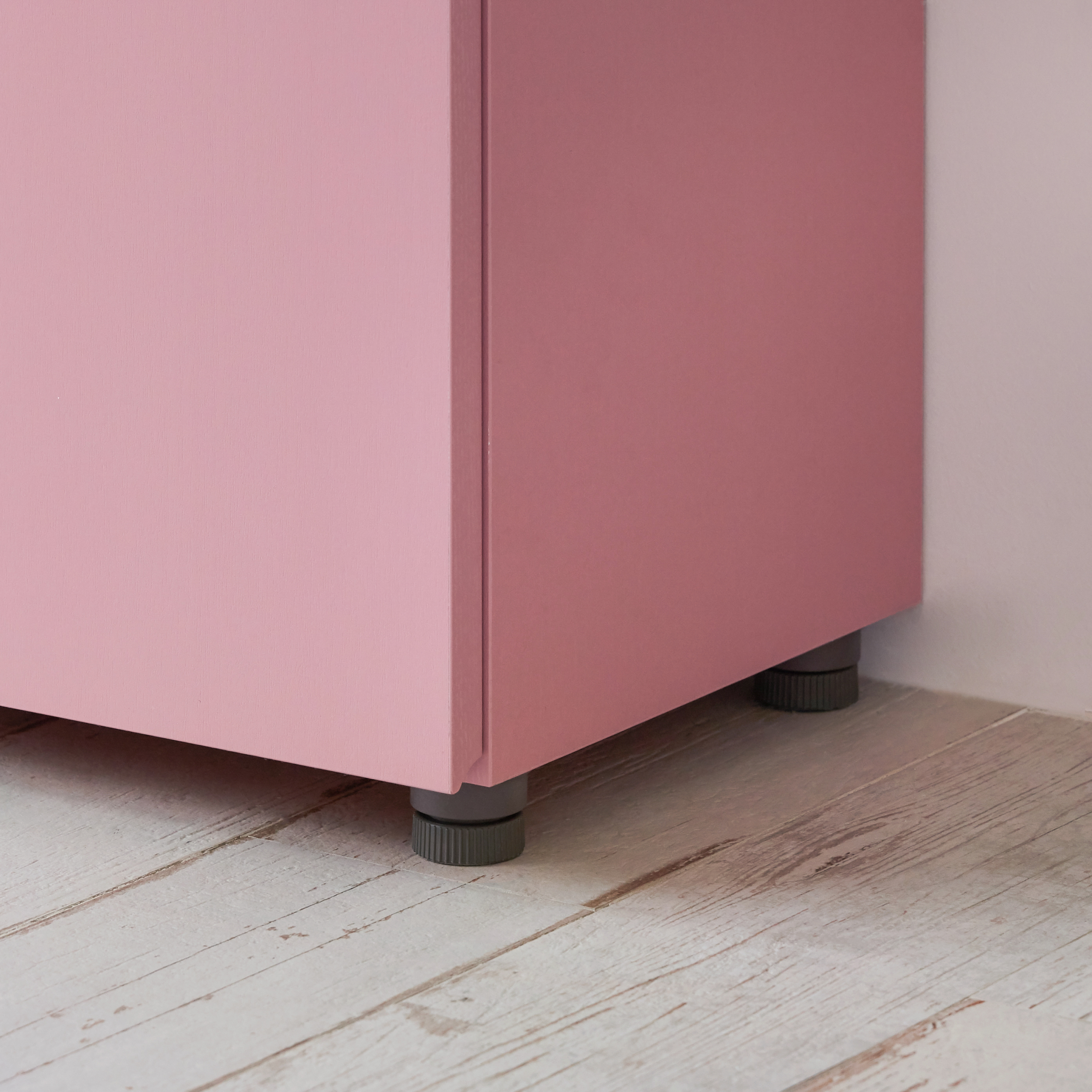 設有可調式腳墊,可依據不同環境調整地板水平。