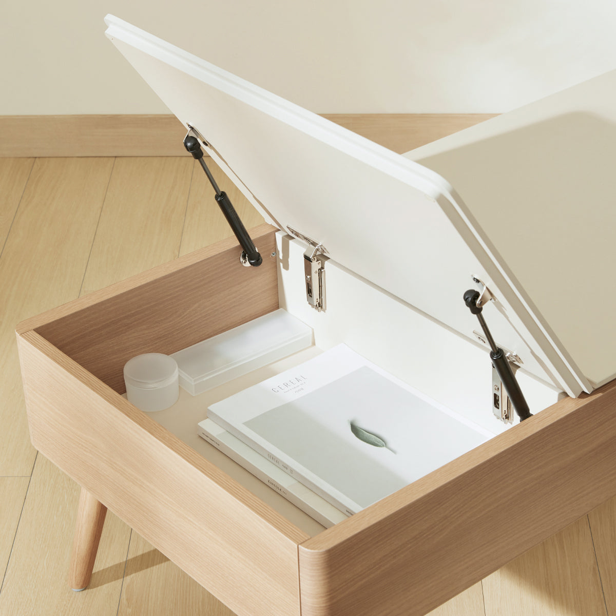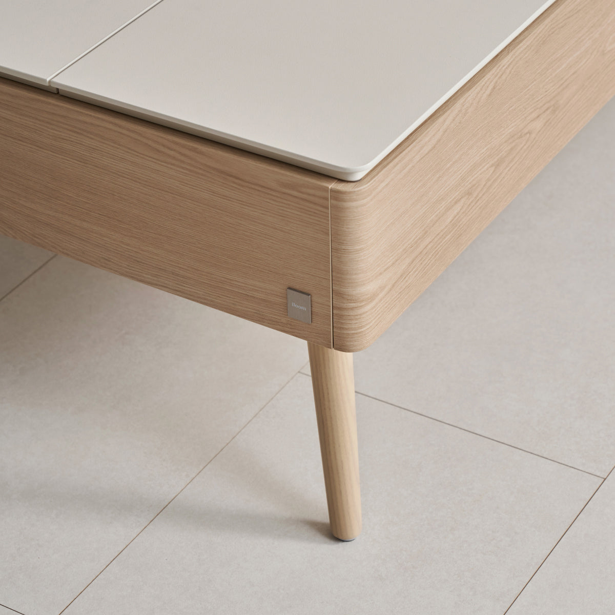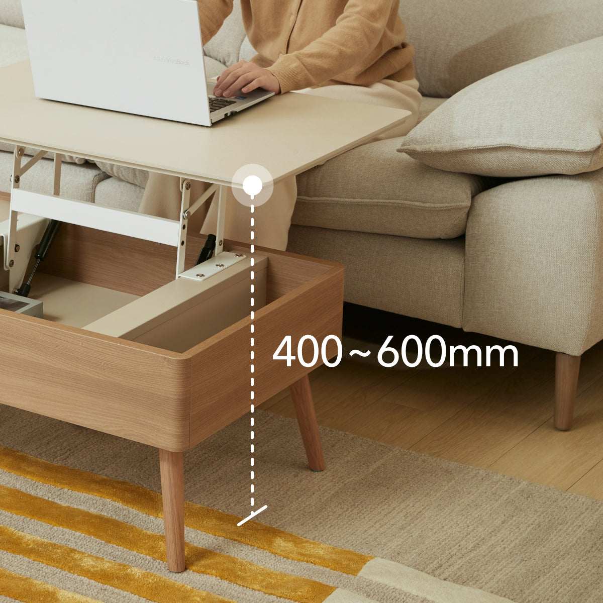具有升降功能的 DELTA-DUAL 可用作為沙發桌或書桌使用 使用筆電的休閒活動或工作、閱讀或下午茶時間等, 根據不同情境變化使用