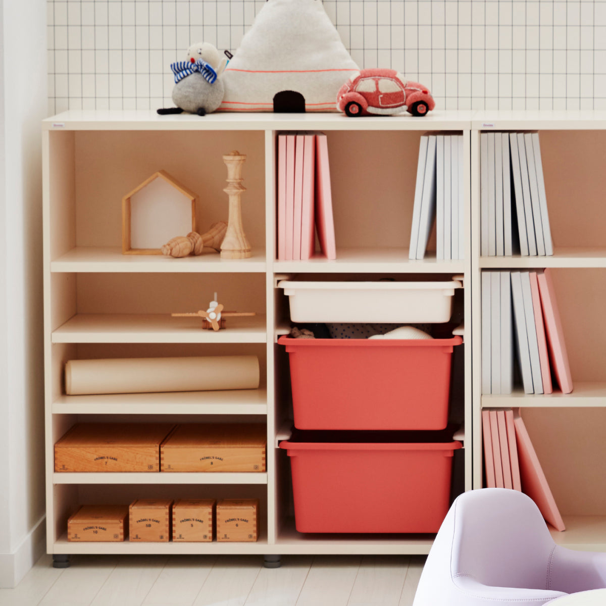 從兒童玩具 , 文具到衣物 , 可以整齊地擺放各種物品的兒童收納櫃