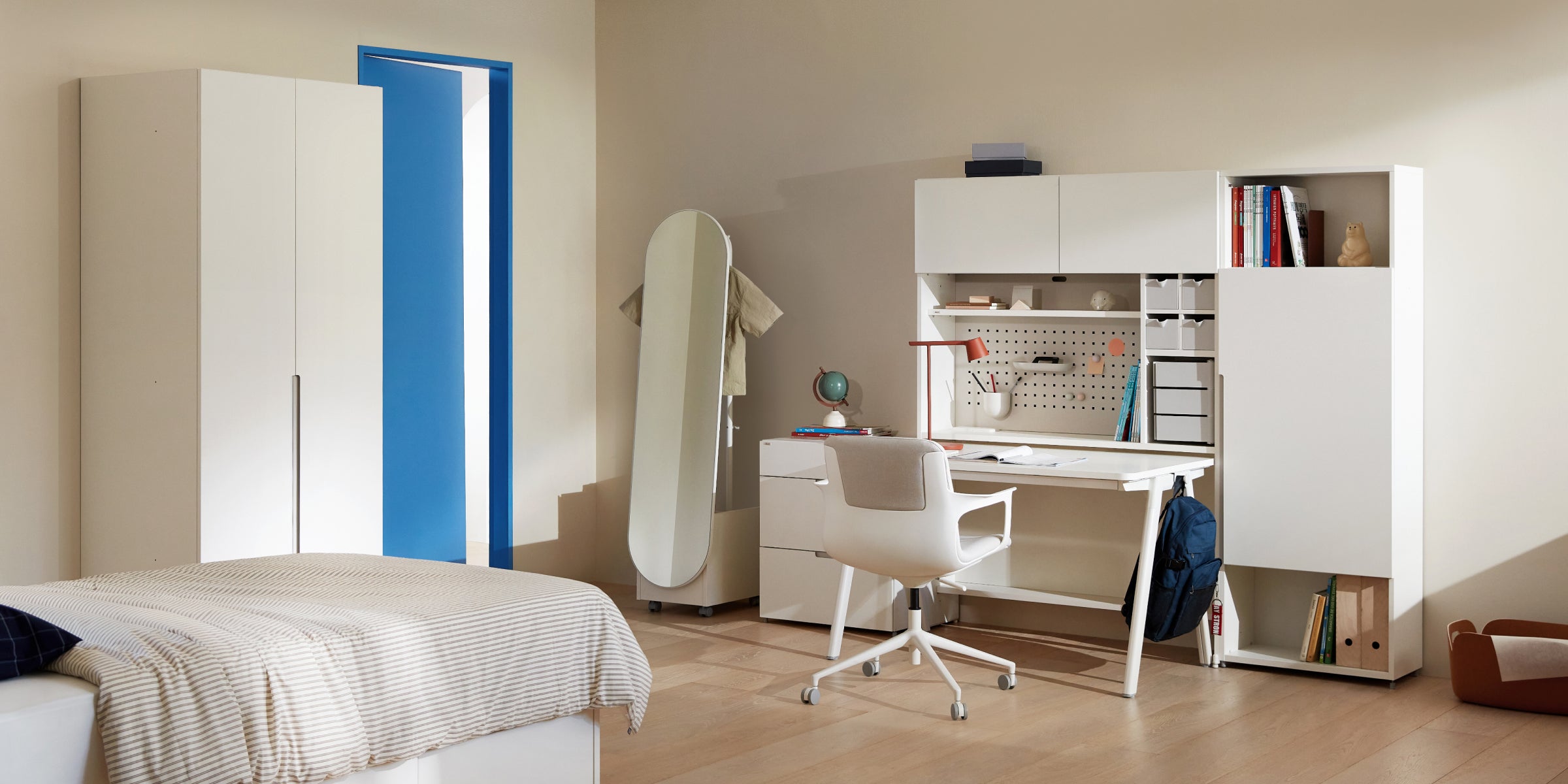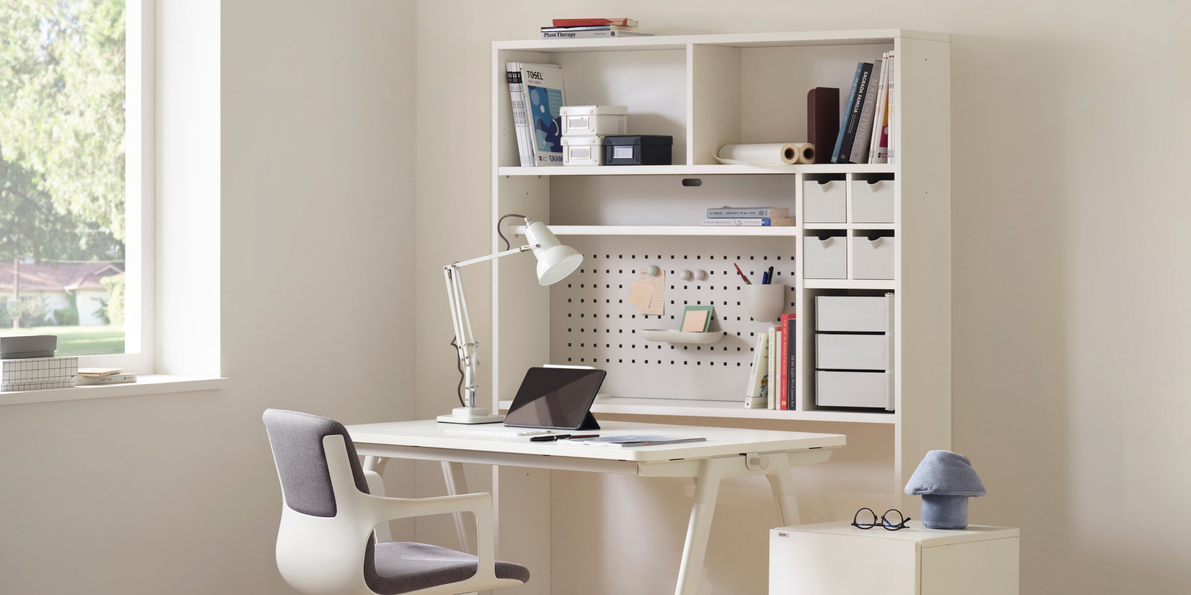 根據學習型態與自身的興趣改變書桌 , 找到最適合自己的書桌擺法 , 展現多樣化的配置方式與活用性的ROY 學生書桌組 5層收納型(集線槽&附LED)