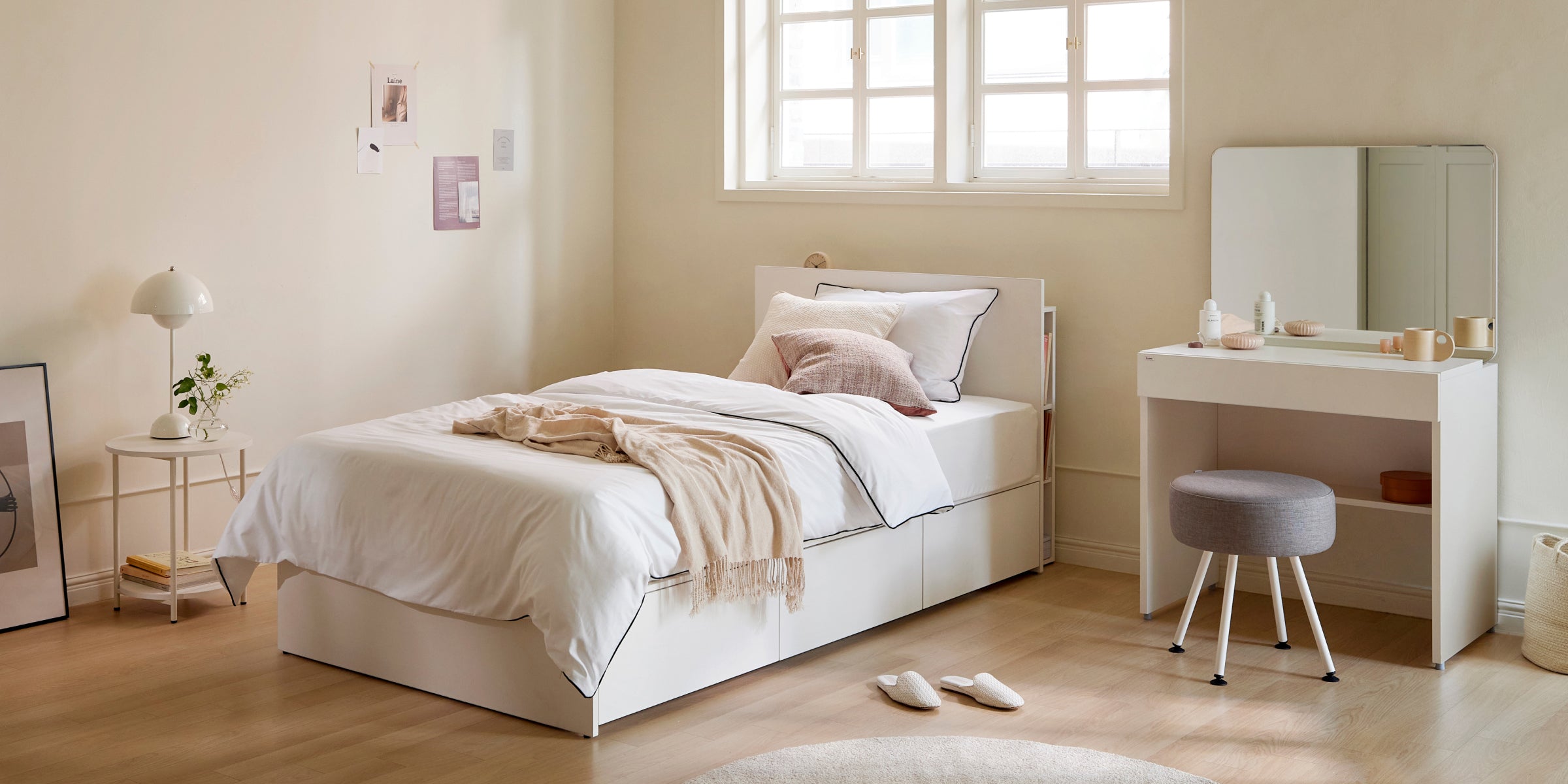 充分發揮收納功能 , 維持簡約設計風格的單人床架