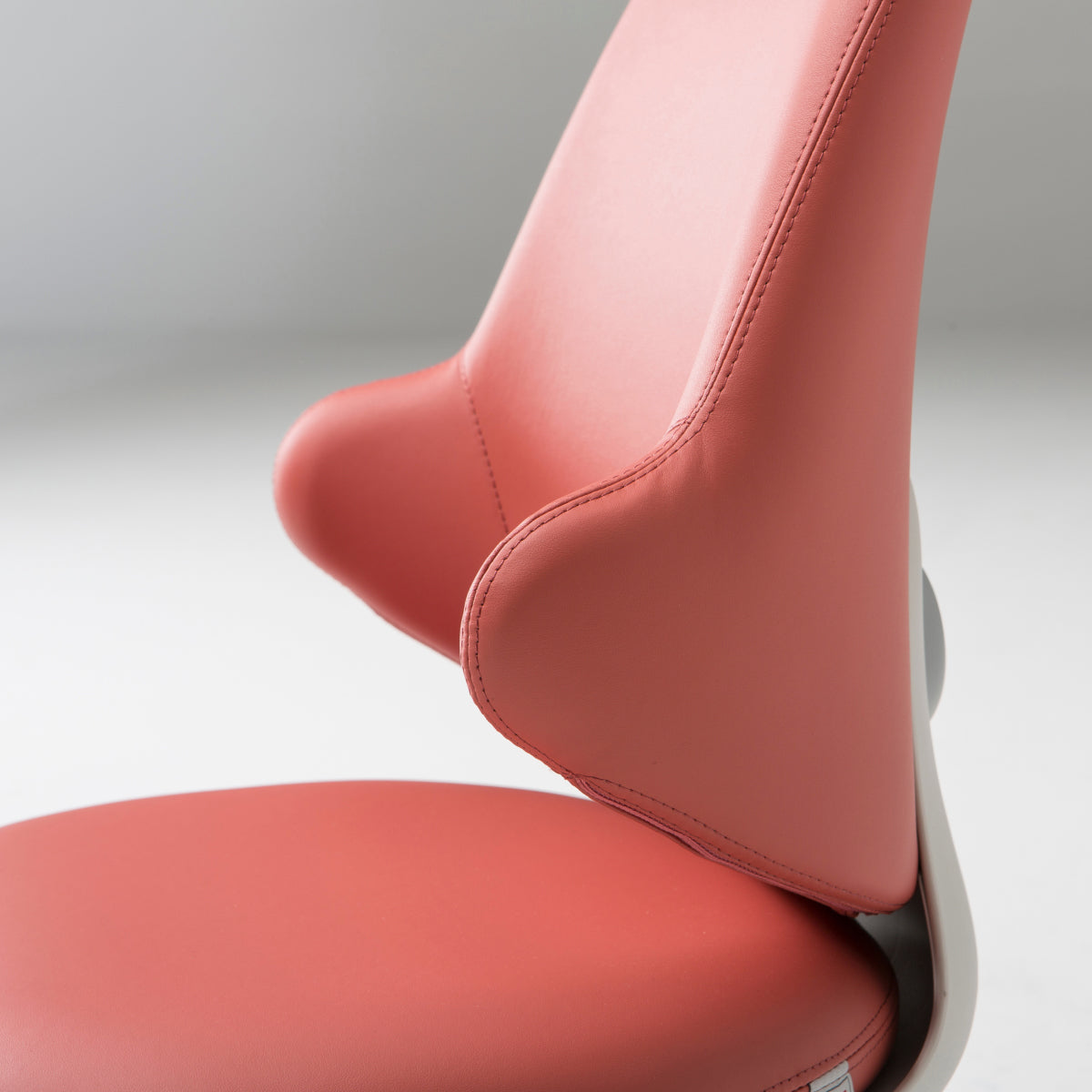 如翅膀包覆般的椅背設計及一體成型的把手 , 可以導正坐姿