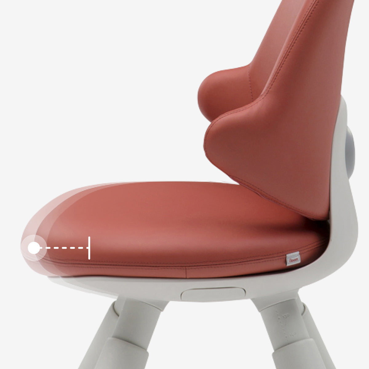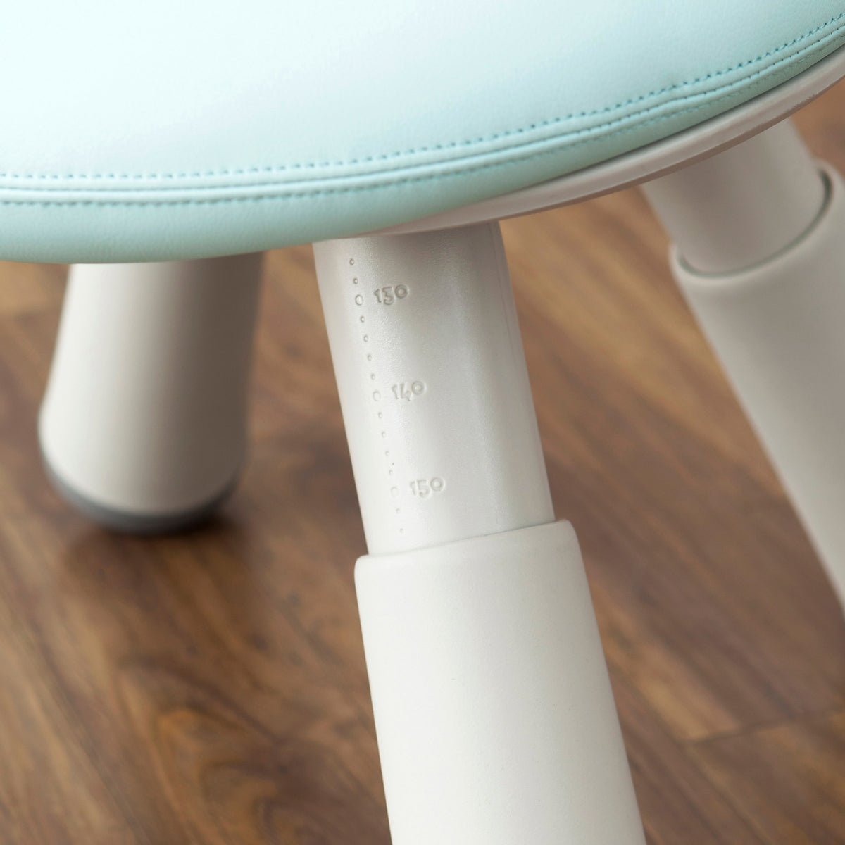依照兒童成長的高度 , 可自由調整椅腳 , 最多能調整 75mm椅腳底部也